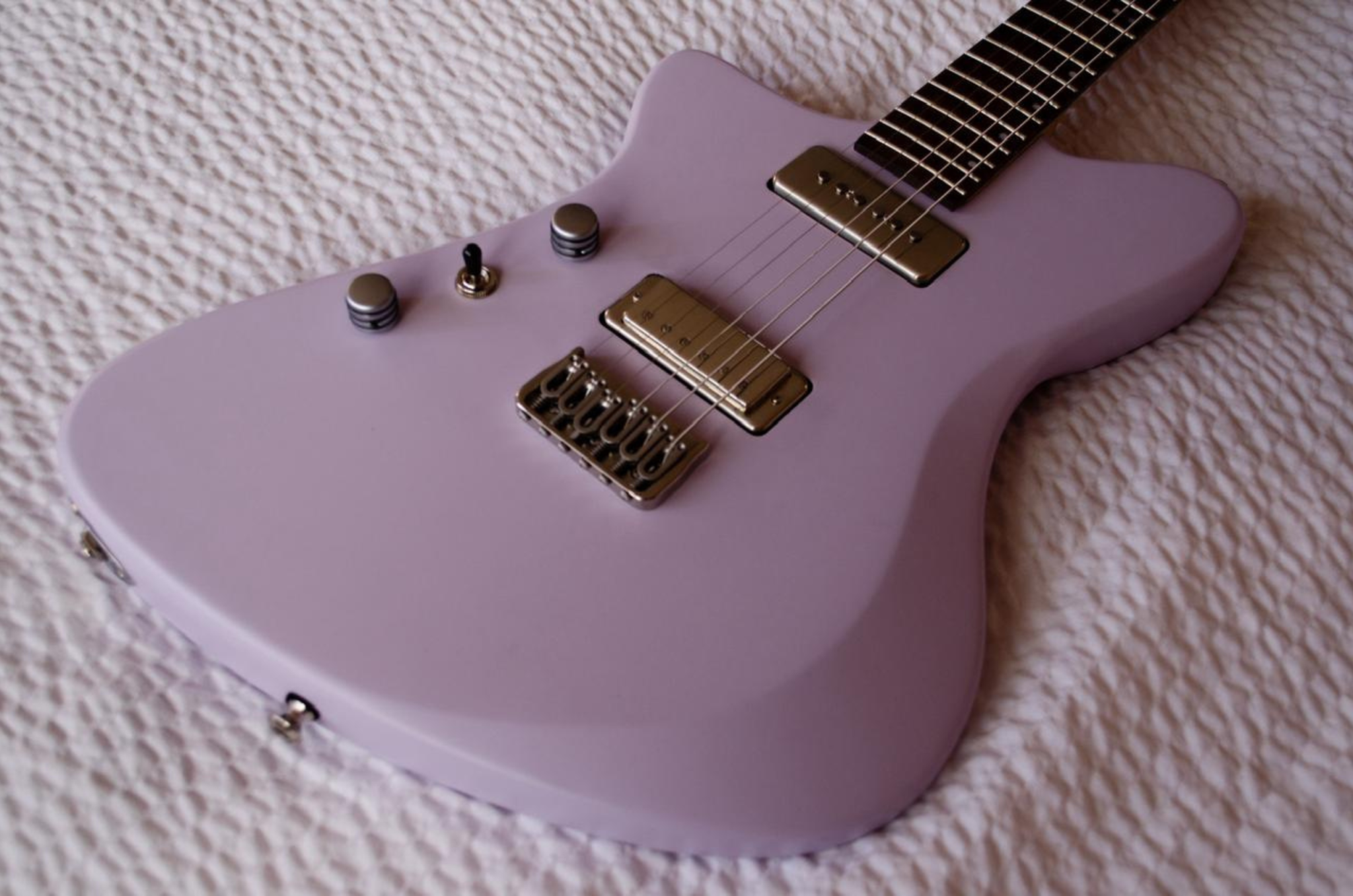 Introducing the Poseidon Mauve Lefty, a boutique custom electric guitar from More Guitars crafted for expressive players like Beak. Built from a two-piece Lenga body and finished in refined Mauve satin, it combines understated elegance with balanced resonance. The maple neck paired with a curly Shedua fretboard offers warmth, clarity, and smooth articulation across its 25” scale. Equipped with premium Hipshot® hardware and a dynamic P90 and mini-humbucker combination, this left-handed instrument delivers versatility, precision, and confident performance on stage or in the studio.